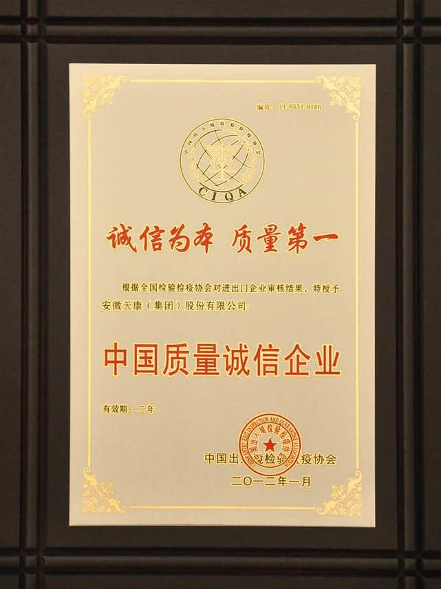 中國(guó)質(zhì)量誠(chéng)信企業(yè)(2年)(中國(guó)出入境檢驗(yàn)檢疫協(xié)會(huì))